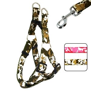 Absolutely Radiant! Add some style to your doggie or kitty walks and weekend shopping with our CAMO Cool Harness & Leash sets! Our incredibly easy-to-use Harnesses are made of durable nylon with custom woven ribbon in stylish designs of dynamic hues are sure a beautiful staple for any pooch and parent. Our innovative nylon step-in harness accommodates most pets from small to larger breeds. This harness features the most convenient and accessible quick-release buckle closure. As the design offers three-point adjustment, not only does it ensure a comfortable fit for your pet, but it is also an ideal choice for growing pets.